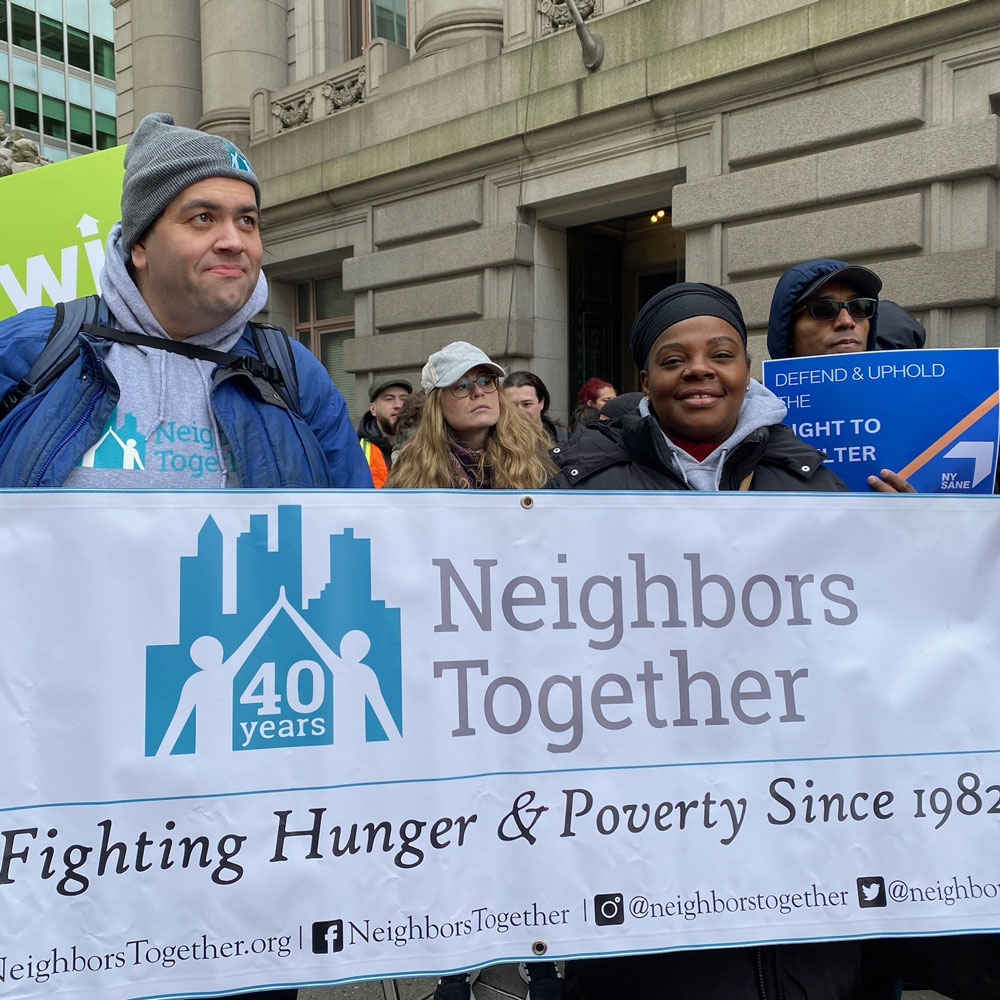 Today, New York City’s deepening affordable housing and homelessness crisis, the ongoing impacts of the pandemic, gentrification, sustained inflation, exorbitant food prices, and the influx of asylum seekers into central Brooklyn have led to a dramatic increase in the demand for Neighbors Together’s meals and mounting requests for help finding affordable housing.